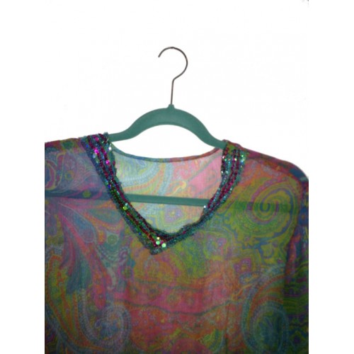 Handmade Chiffon Print Tunic, with a delicat Moroccan embroidery on the sleeves and around the collar.1 piece