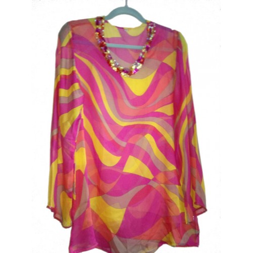 Handmade Chiffon Print Tunic with a delicate Moroccan embroidery on the sleeves and around the collar.1 piece