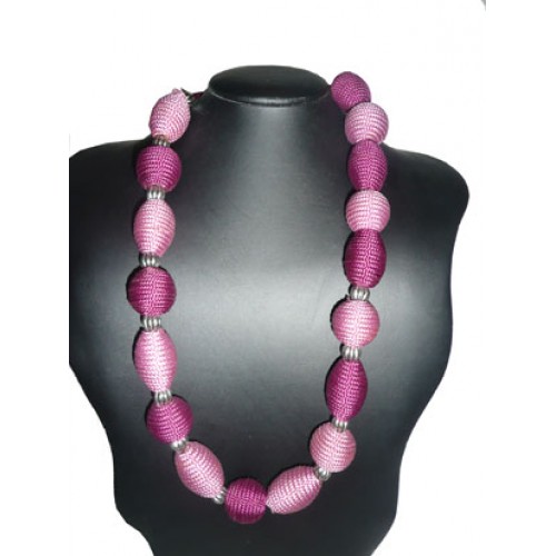 An exclusive design Fabric Necklace with small Maillechort pieces,in pink and burgundy.