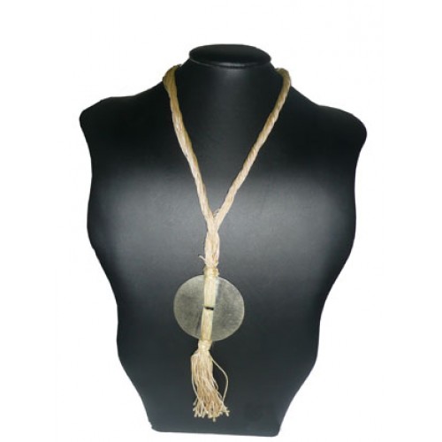 An unusual beautiful combined Moroccan fabric necklace and a metal medal