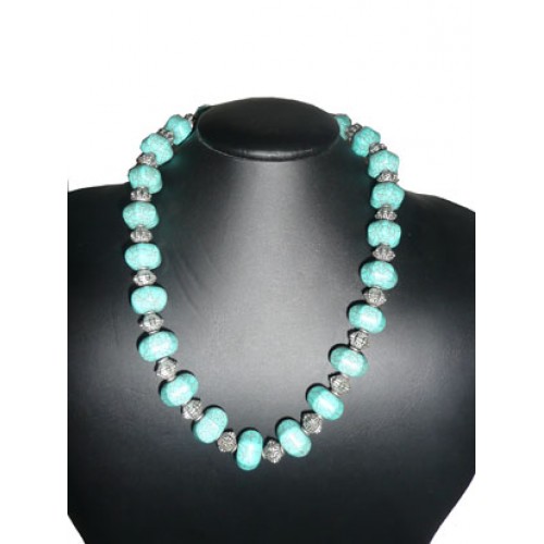 A turquoise stone necklace beautifully combined with maillechort parts for an exceptionel Moroccan touch.