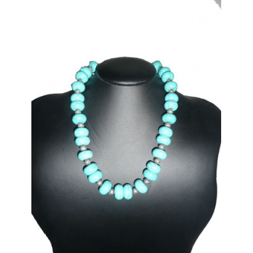 A turquoise necklace stones same size in a classic style but with a a touch of Moroccan Maillechort design.