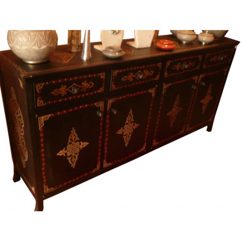 An exclusive piece of furniture. Handmade and hand painted by Moroccan "artisans" buffet table in wood in Black,with special graphic design.