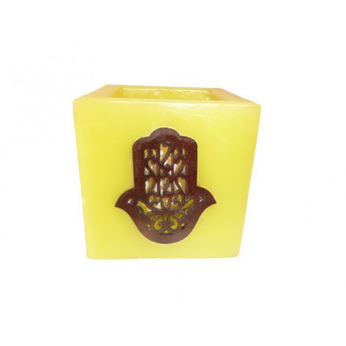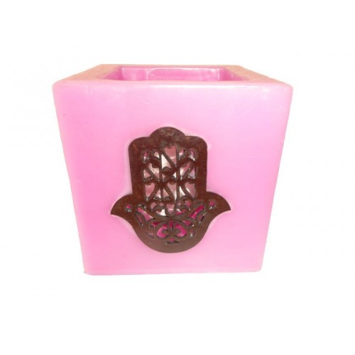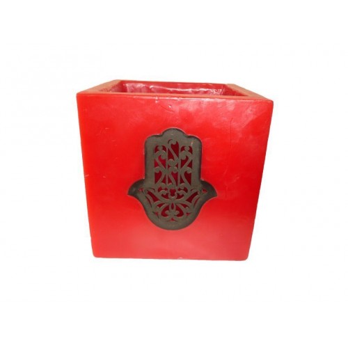 Stand candle handmade with wax, for tealight, with FATIMA hand moroccan design.